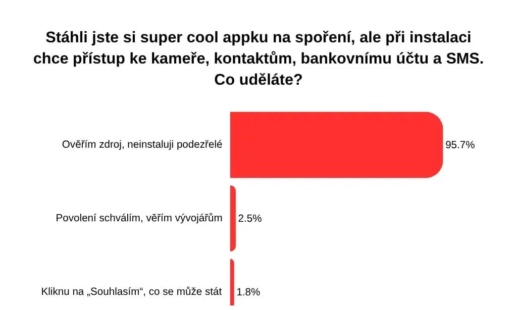 A teď ta čísla: 95 % účastníků správně zpozornělo a dalo aplikaci stopku. Paráda! Ale zhruba 5 % by i tak kleplo na “Povolit”.