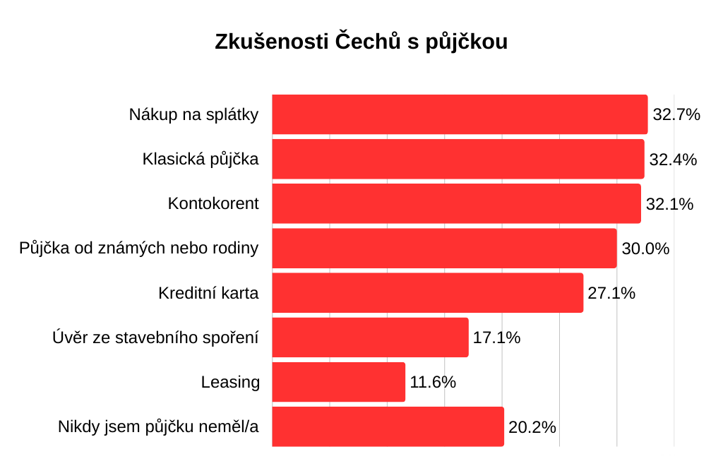 Když už si chceme půjčit, nejčastěji zamíříme do banky. Pro 58 % lidí je to první volba. Přece jen jde o instituce, které působí důvěryhodně a většina z nás u nich stejně má účet. Druhou poměrně častou zastávkou je ale také rodina nebo známí. Přibližně třetina lidí si někdy půjčila právě od příbuzných. A pak je tu ještě třetí skupina poskytovatelů - splátkové a nebankovní společnosti, které využívá asi pětina Čechů.